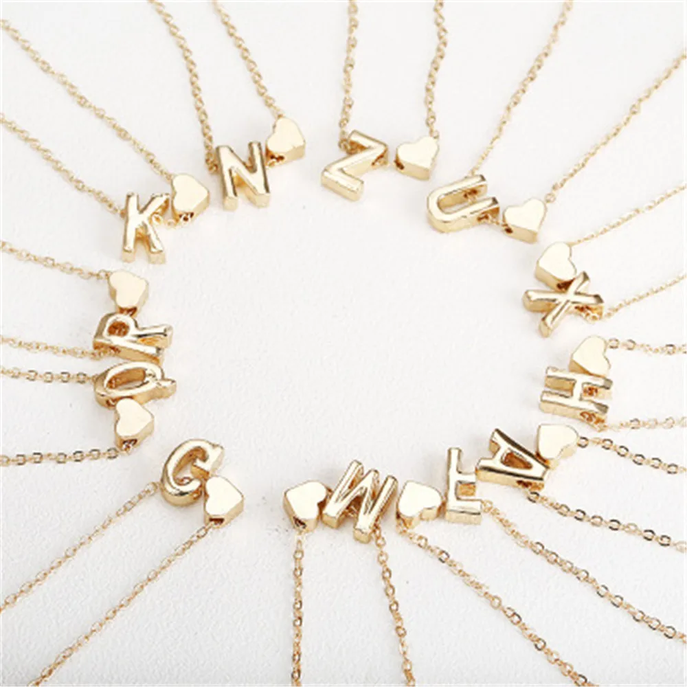 Fashion Tiny Heart Dainty Initial Necklace Gold Silver Color Letter Name Choker Necklace For Women Pendant Jewelry Gift