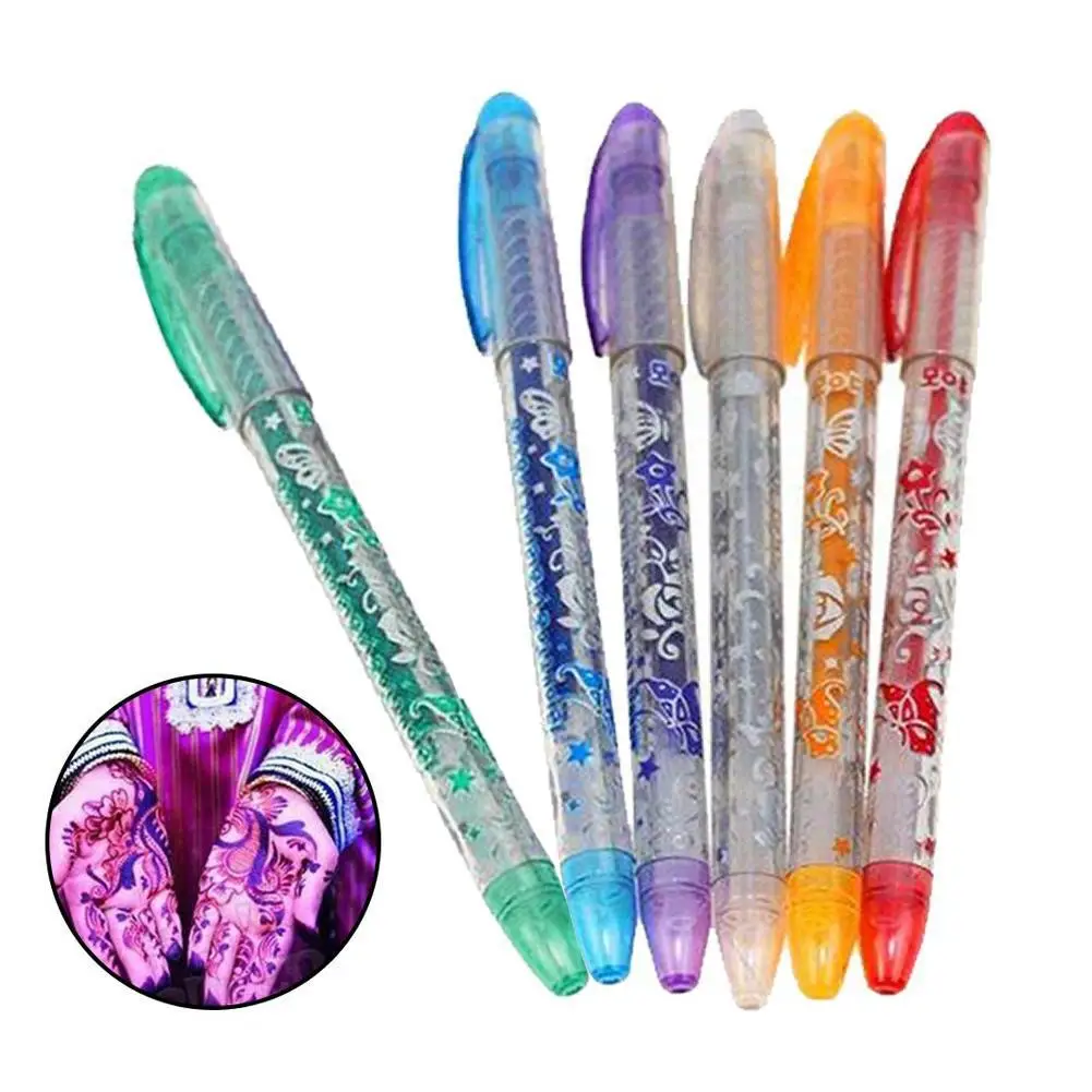 6 Colors Skin Mark Body Glitter Tattoo Pens Stencil Gel Temporary Kids Gifts Washable Ink Imaginative Toys Smooth Paint
