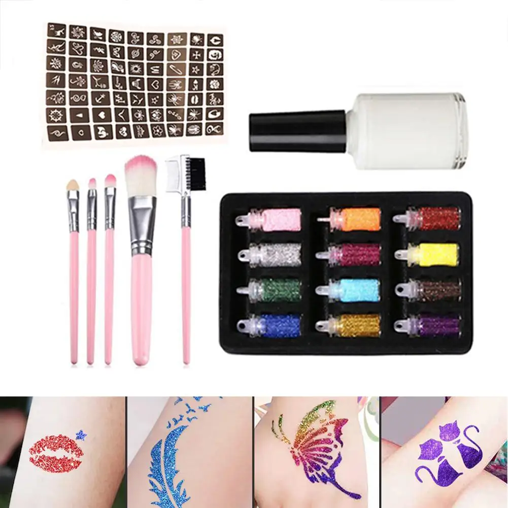 .Gallery for Temporary Tattoo Set Flash Diamond Glitter Flash Powder For Temporary Tattoo Set Kids Face Body Painting Art Makeup Tools